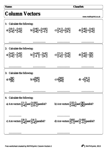 Adding Vectors Worksheet Addition Worksheets aid pupils learn a new concept and perform addition activities. Multiplying column vectors by a scalar - Boss Maths. Don Stewards vectors resources.