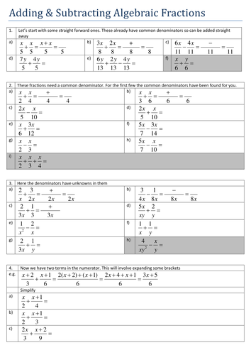 A Adding and Subtracting Algebraic Fractions Worksheet is the greatest thing for your kid to understand because they are able to start creating their own worksheets to tackle math conditions that they could be having. These ready-to-use printable worksheets help assess student learning. To add or subtract fractions you must have a.