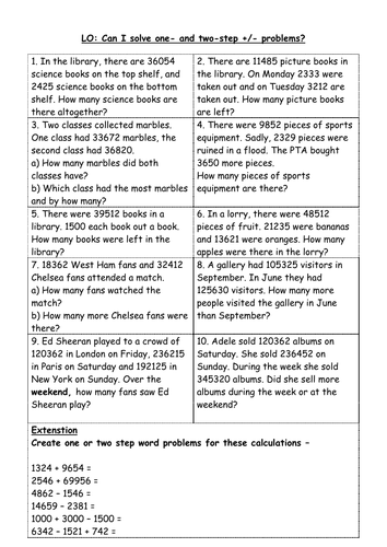 Addition And Subtraction Word Problems Year 3 Tes